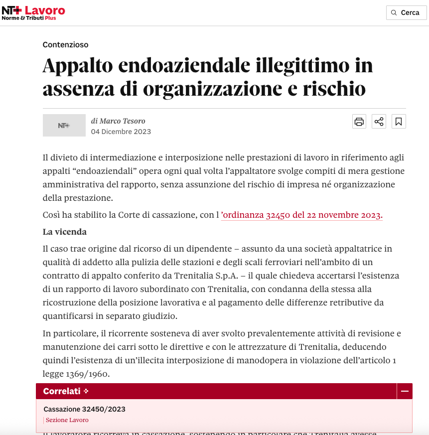 Pubblicato su: Il Sole24Ore - Nt Lavoro - 17/04/2024 Leggi qui