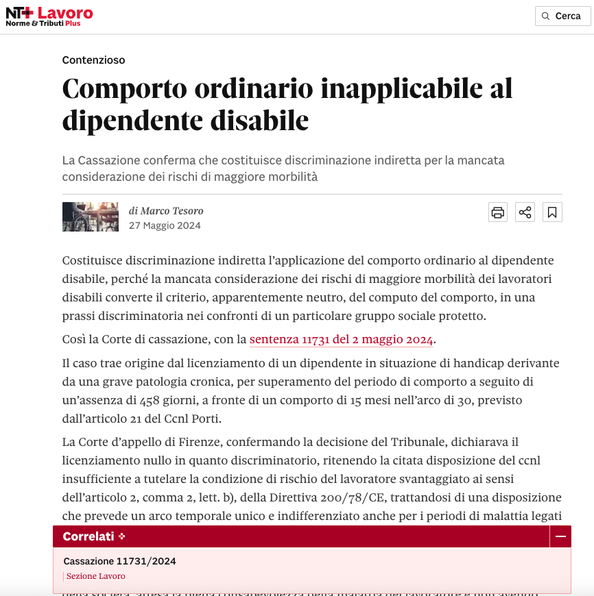 Pubblicato su: Il Sole24Ore - Nt Lavoro - 17/04/2024 Leggi qui