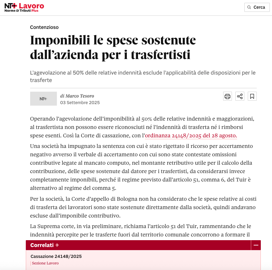 Pubblicato su: Il Sole24Ore – Nt Lavoro – 03/09/2025