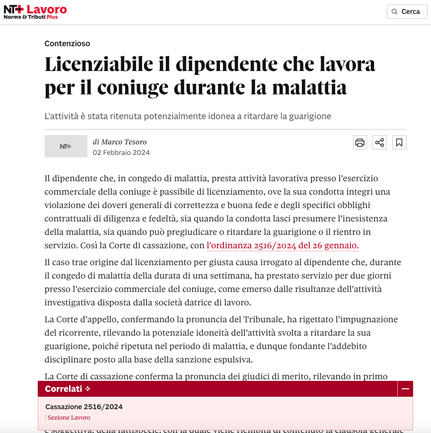 Pubblicato su: Il Sole24Ore – Nt Lavoro – 05/11/2024 Leggi qui