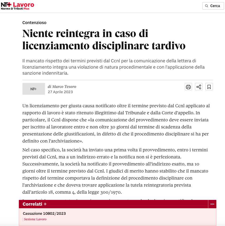 Pubblicato su: Il Sole24Ore - Nt Lavoro - 17/04/2024 Leggi qui