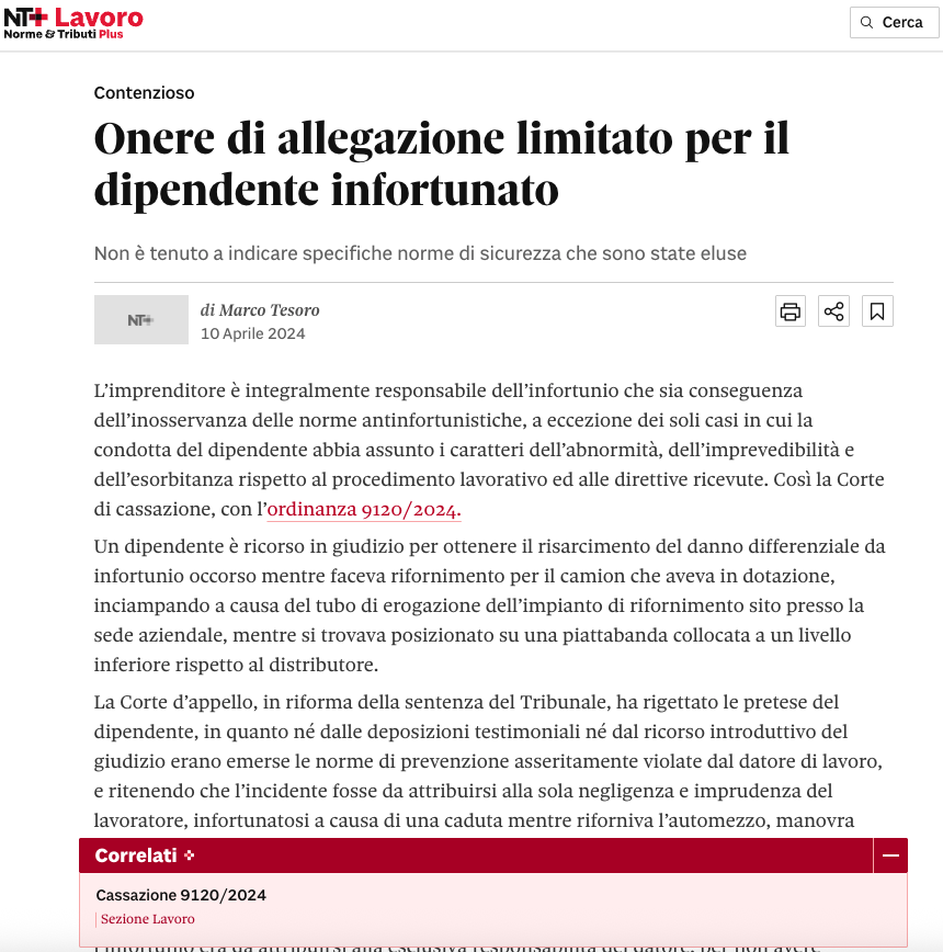 Pubblicato su: Il Sole24Ore - Nt Lavoro - 17/04/2024 Leggi qui