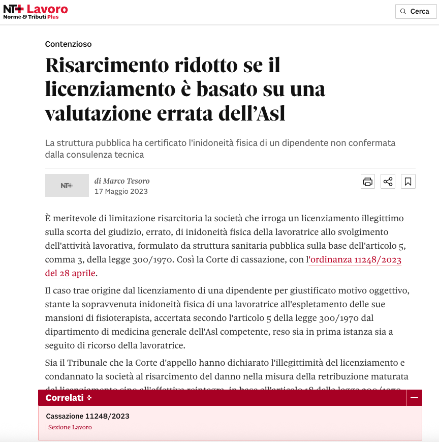Pubblicato su: Il Sole24Ore - Nt Lavoro - 17/04/2024 Leggi qui