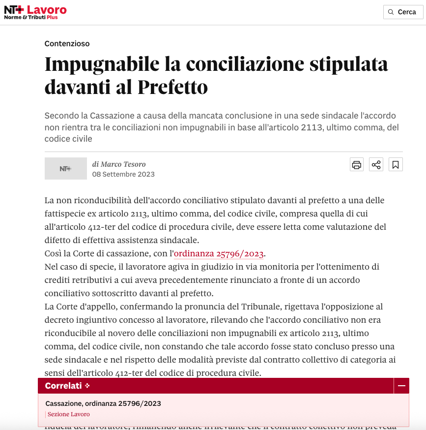 Pubblicato su: Il Sole24Ore - Nt Lavoro - 17/04/2024 Leggi qui