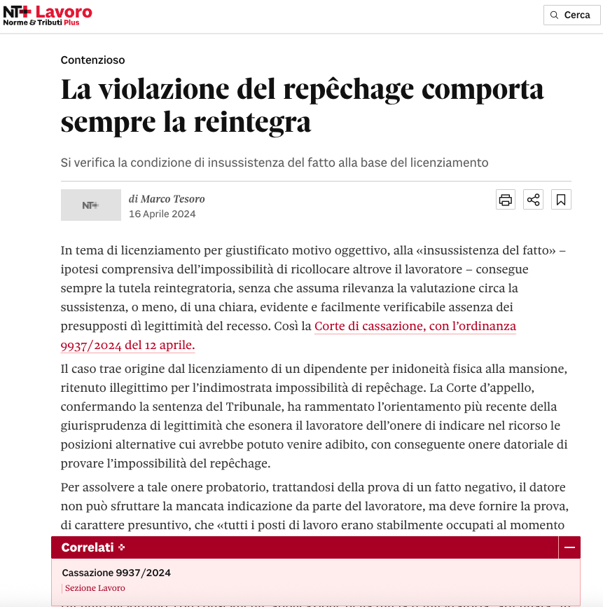 Pubblicato su: Il Sole24Ore - Nt Lavoro - 27/05/2024 Leggi qui
